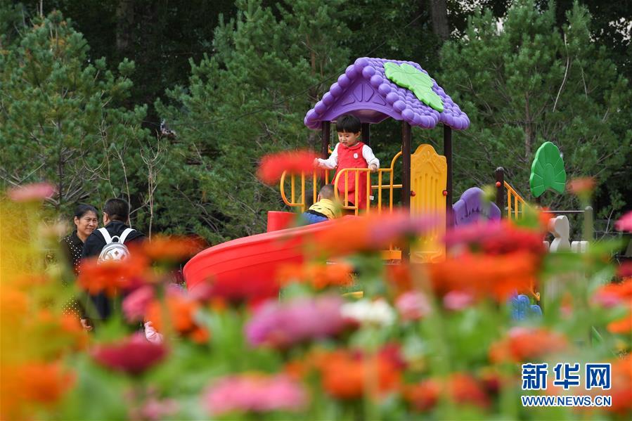儿童在阿尔山市一处棚改集中安置点的广场上玩耍(812日摄)。新华社记者 刘磊 摄
