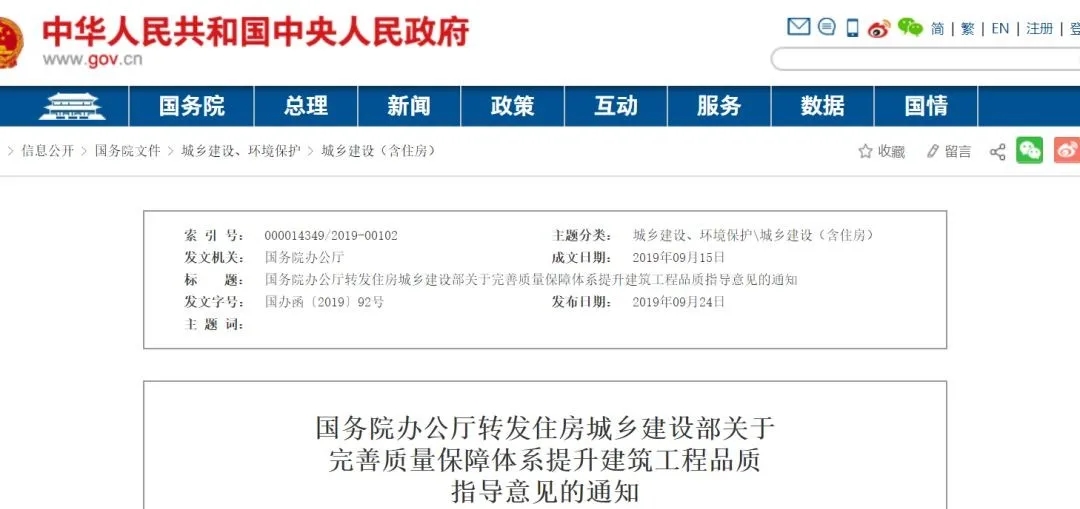 关于完善质量保障体系提升建筑工程品质的指导意见
