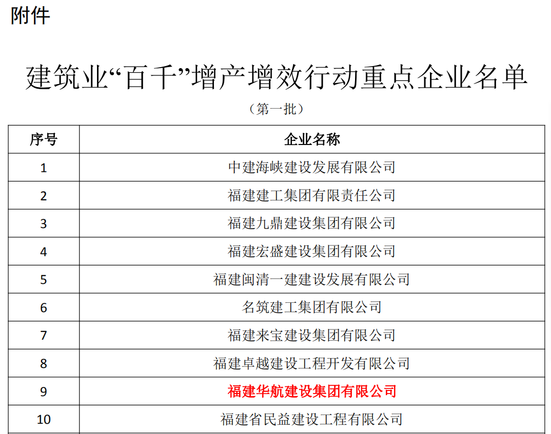 根据《实施一二三产业“百千”增产增效行动方案》指示要求,福建省住房和城乡建设厅印发《福建省建筑业“百千”增产增效行动实施方案》并公布第一批建筑业企业名单(100家),新利软件(集团)股份有限公司集团成功入选。