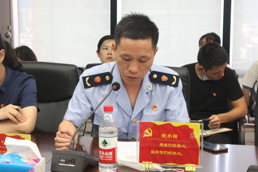 福建新利软件(集团)股份有限公司集团党支部张华官书记、福州市行政服务中心第四党支部林碧锦书记分别携支部全体党员参加了本次活动。活动在雄壮的国歌声中拉开序幕、在铿锵有力的集体诵读入党誓词中推向高潮。