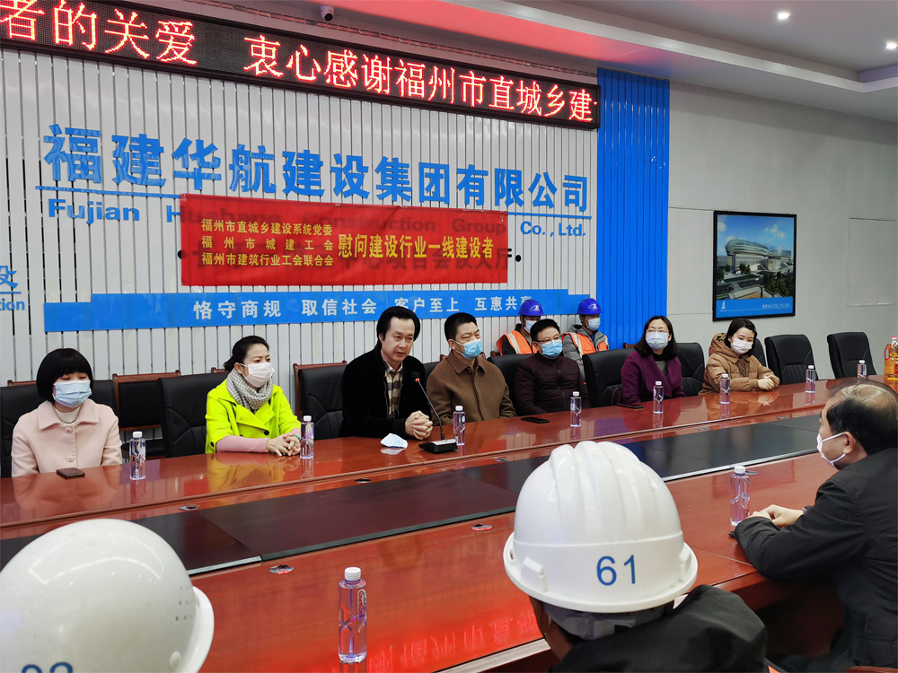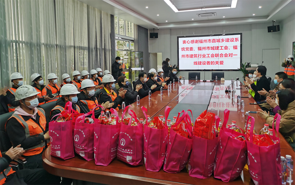 1月20日上午,福州市直城乡建设系统党委林典国书记、福州市城建工会吴流河主席、福州市建筑业协会会长施忠旗、王斌秘书长一行,莅临我司长乐三馆三中心项目部,给新利软件(集团)股份有限公司集团一线建设者们带来春节前的慰问。新利软件(集团)股份有限公司集团陈益魁总经理、瞿生亮副总经理、刘越生副总经理等公司领导陪同,集团党支部、工会、总经办、项目管理中心和项目部的一线职工参加活动。