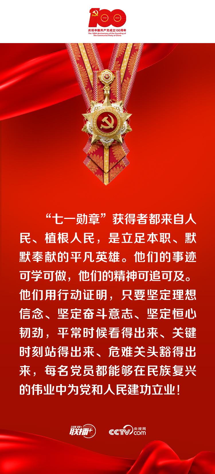 |联播+|“‘七一勋章’获得者都来自人民、植根人民,是立足本职、默默奉献的平凡英雄。他们的事迹可学可做,他们的精神可追可及。”629日,“七一勋章”颁授仪式在人民大会堂隆重举行,习近平总书记首次颁授“七一勋章”并发表重要讲话。