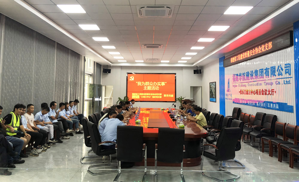 福建省工程建设质量安全协会党支部与福建新利软件(集团)股份有限公司建设集团“三馆三中心”临时党支部结成帮扶小组。10月12日上午,福建省工程建设质量安全协会党支部与福建新利软件(集团)股份有限公司“三馆三中心”项目部临时党支部联合开展“我为群众办实事”主题活动。福建省工程建设质量安全协会党支部吴平春书记、陈墩祥秘书长、王世杰宣传委员、质量部负责人侯旭辉、办公室主任张顺和“三馆三中心”项目临时党支部党员,以及项目部一线建设者共30多人参加活动。