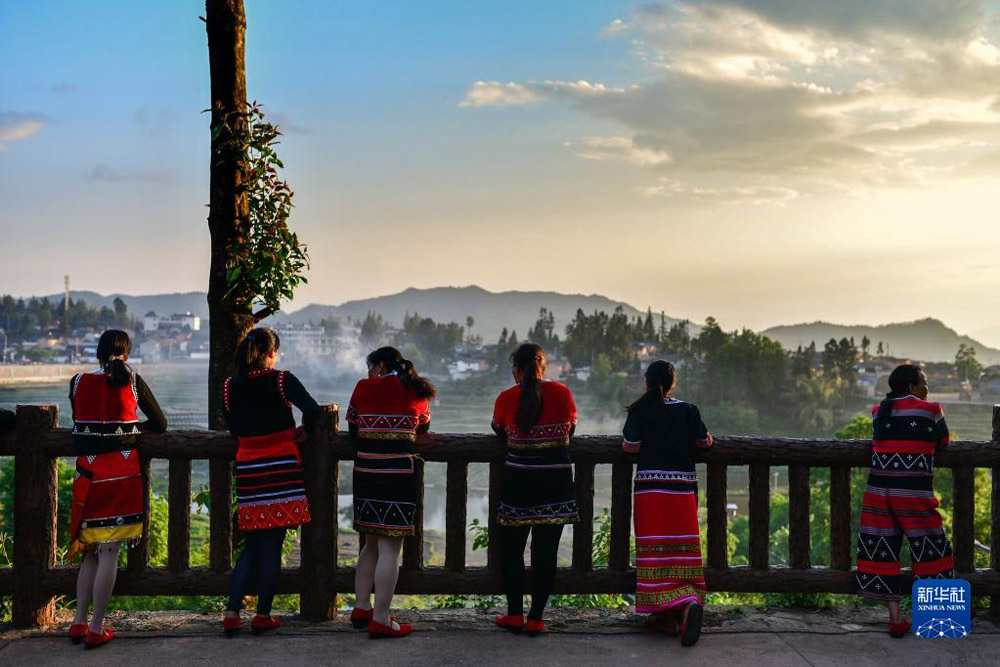 云南省腾冲市清水乡三家村中寨司莫拉佤族村村民在广场上休息(2020515日摄)。新华社记者 胡超 摄