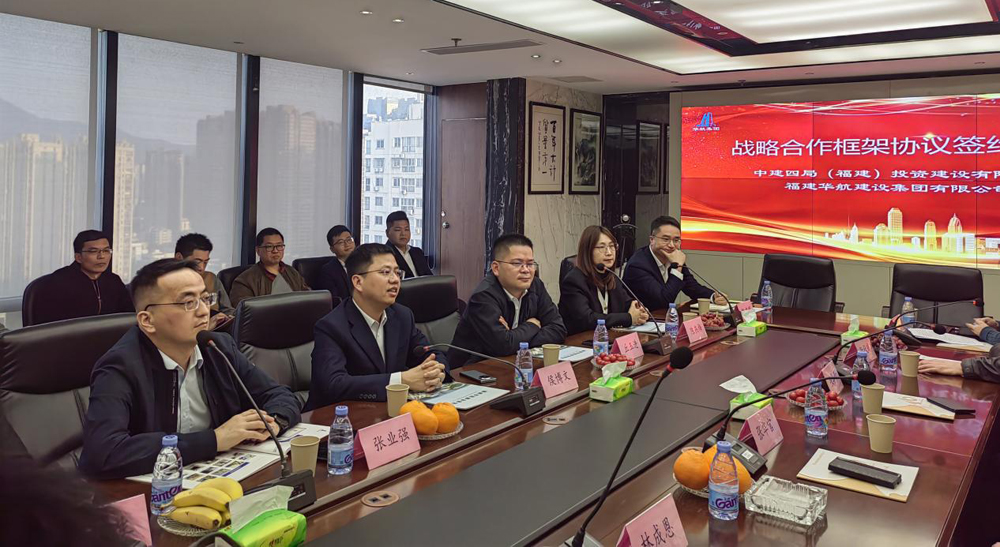 中建四局(福建)投资建设有限公司丘华生总工程师、陈燕梅副总经济师和市场部、工程部等相关负责人,福建新利软件(集团)股份有限公司建设集团张华贵副董事长、林成恩副董事长、阮伏球总经理等集团中高管参加本次签约会议。